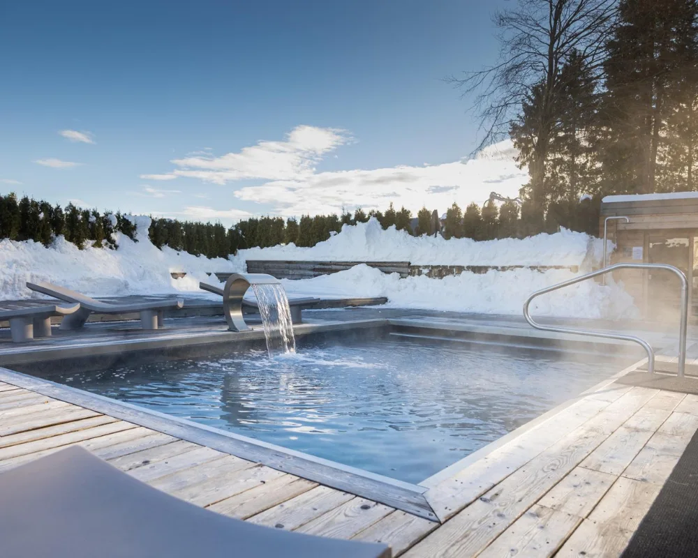 Moderno centro benessere con con sauna finlandese, bio-sauna, vasca a reazione, docce emozionali, aree relax, piscina coperta con idromassaggio e cascata. Tutto compreso